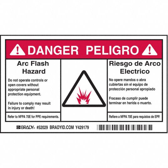 Arc Flash Warning Labels & Stickers | BRADY - BradyID.com Standard arc flash labels are available with either "Warning" or "Danger" headers. Write-on labels are also available. Arc Flash labels indicate the equipment-specific hazard information. These electrical safety labels meet all current OSHA, NFPA, NEC and NFPA70E requirements.